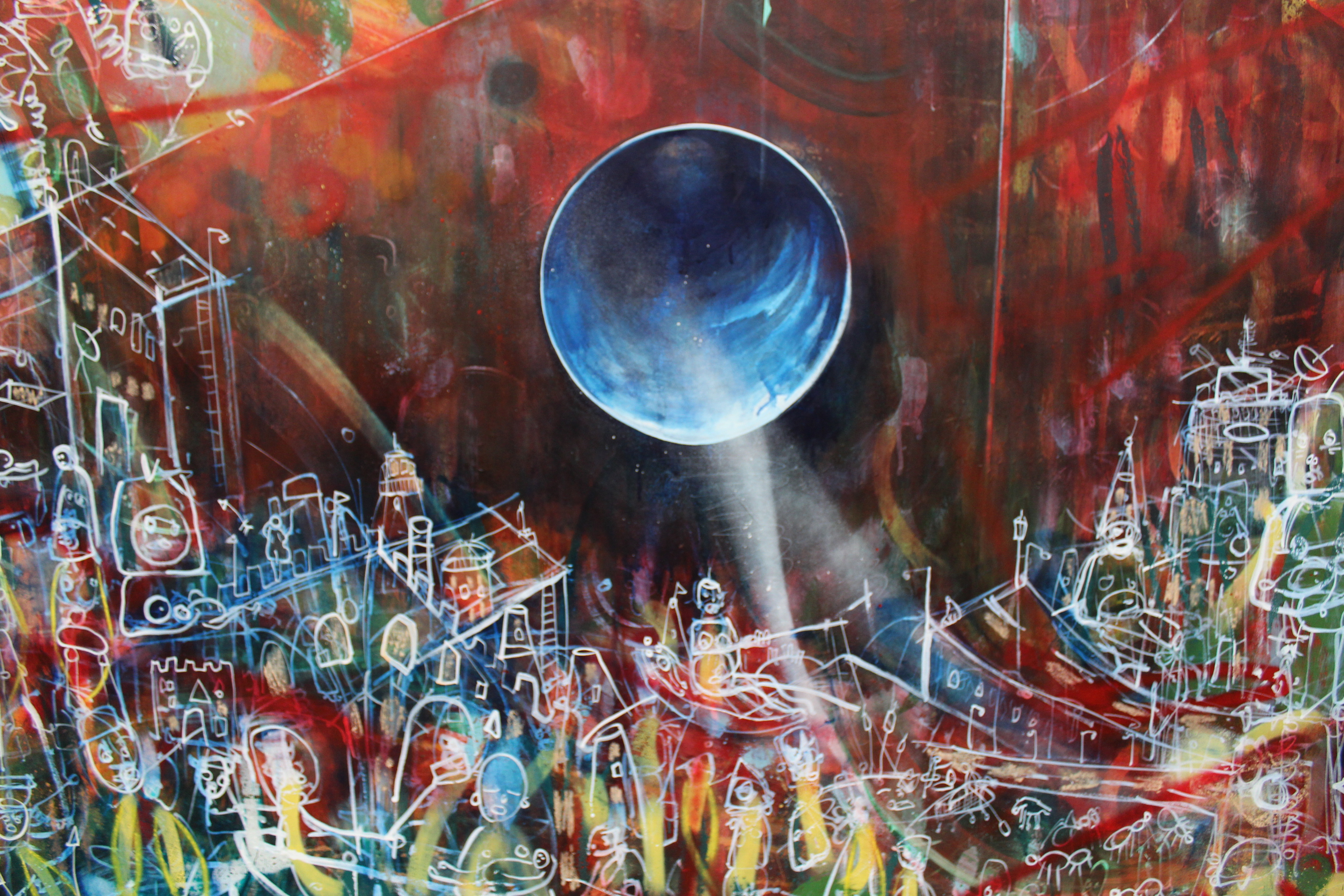 Acrylic, waterbased spray paint, ink on Cartridge Paper