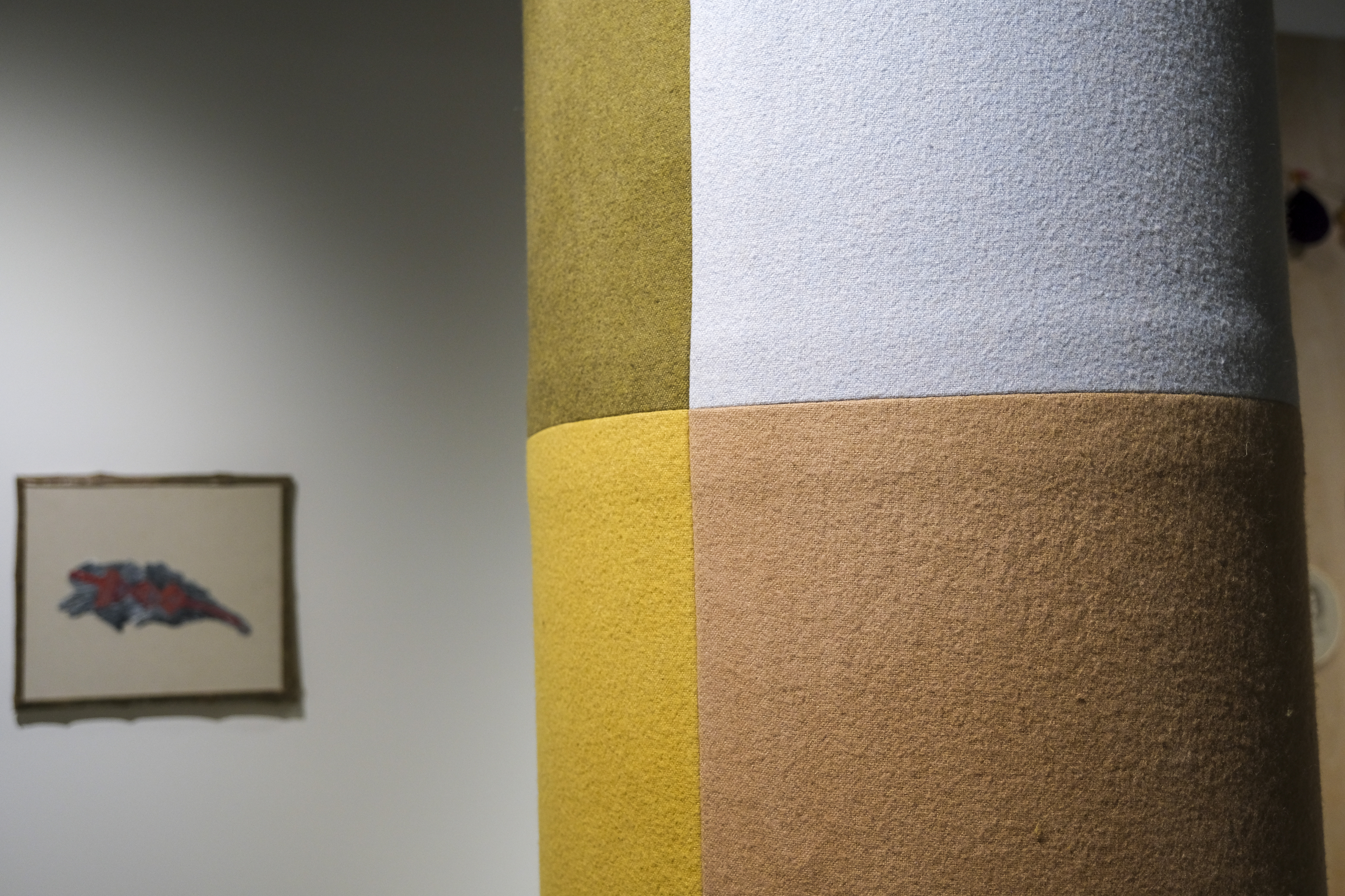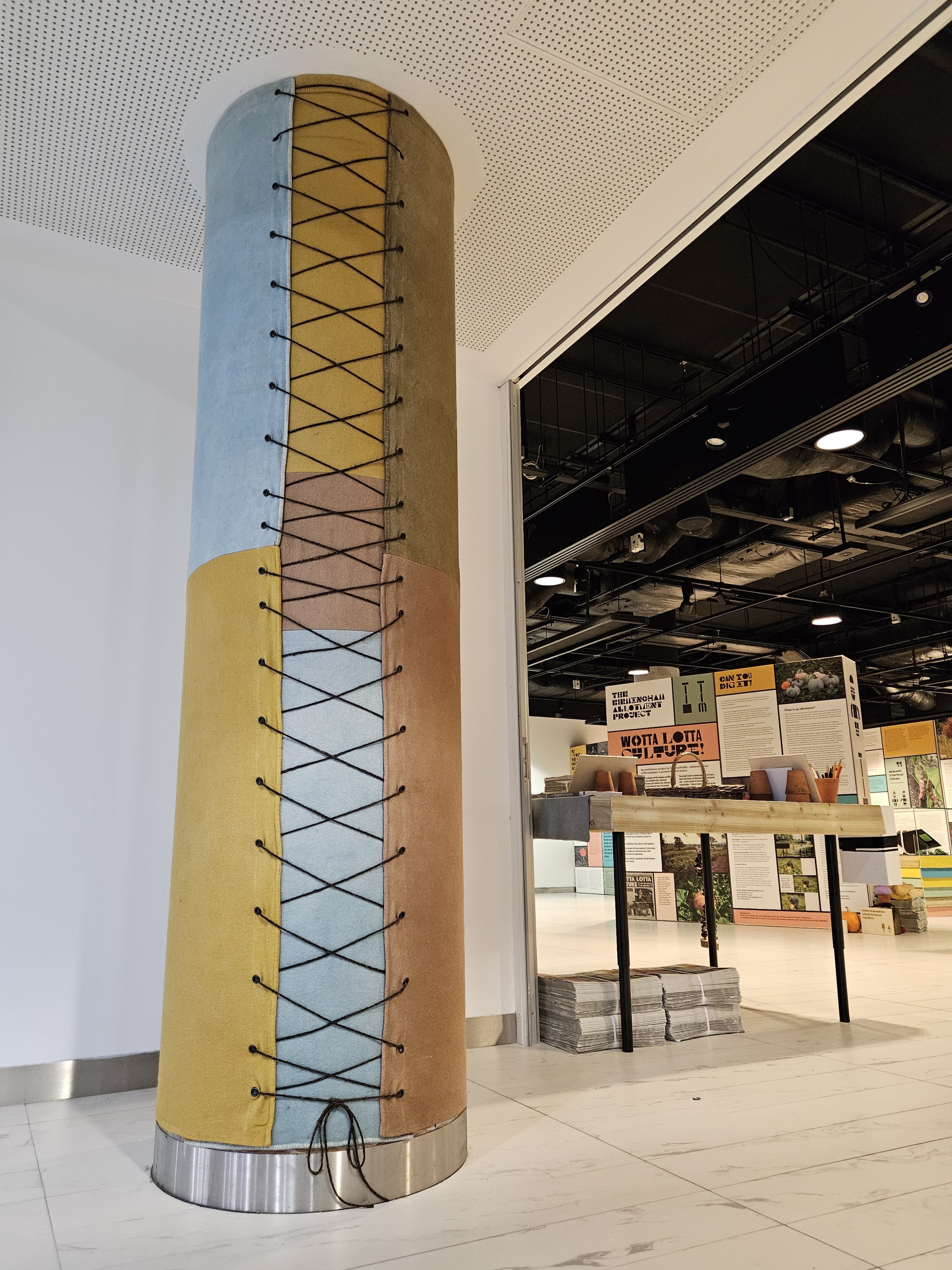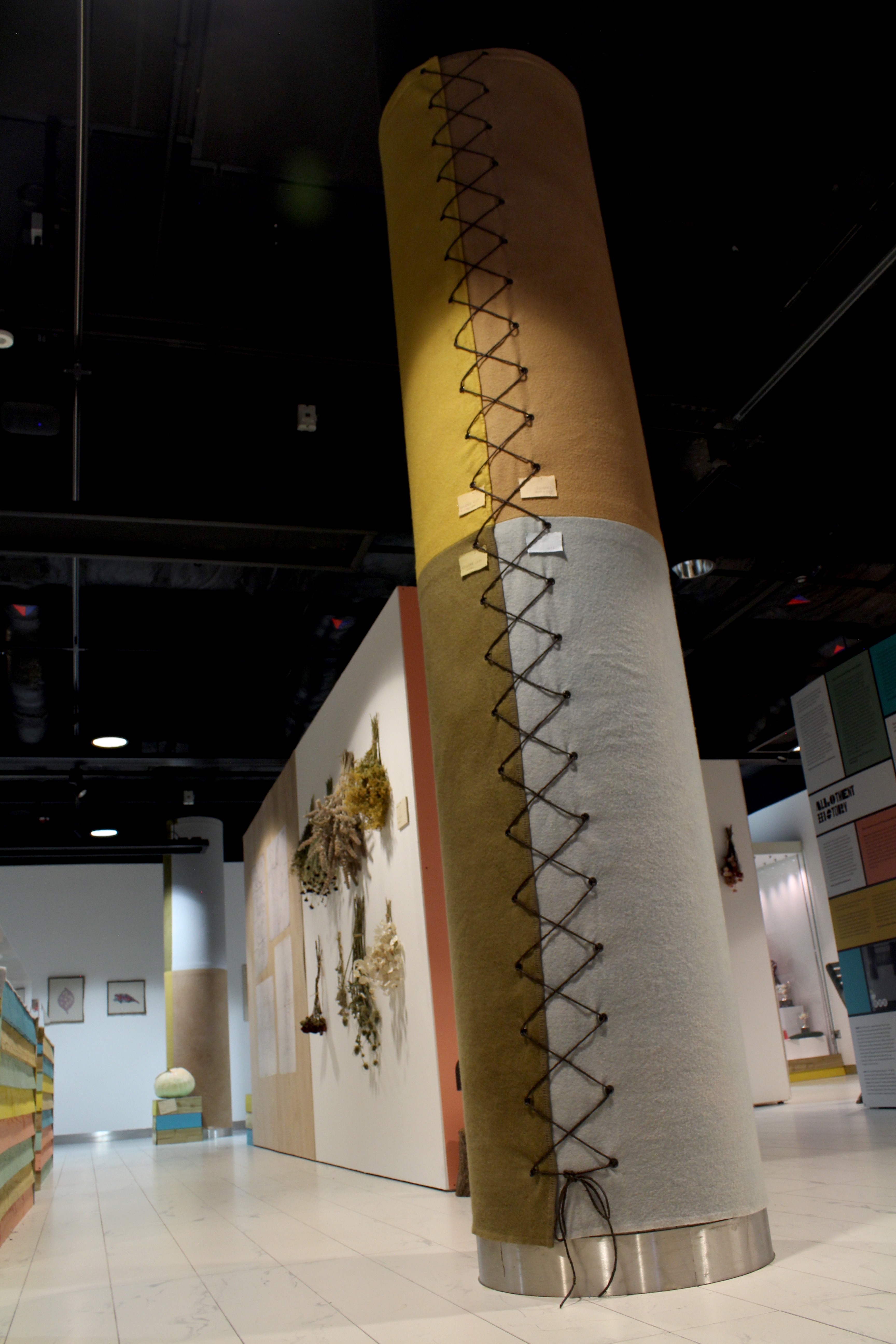 For a bespoke natural dye commission, I designed patchwork pillar wraps and cloth for display cases dyed with heritage dye plants grown on Birmingham allotments.